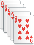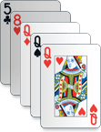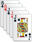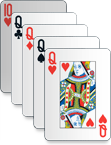 This hand is made up with 4 cards of the same value (e.g. 4 X Jacks). If more than one player has Four Of A Kind the highest value Four Of A Kind would win.
