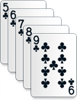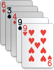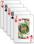 To make a Straight the must run in value (e.g. 4,5,6,7,8) but it does not matter what suit they are. If more than one player has a Straight , the player with the best Highcard wins.