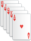 The highest possible poker hand is the Royal Flush. It consists of a Ten, Jack, Queen, King and Ace, all of the same suit.